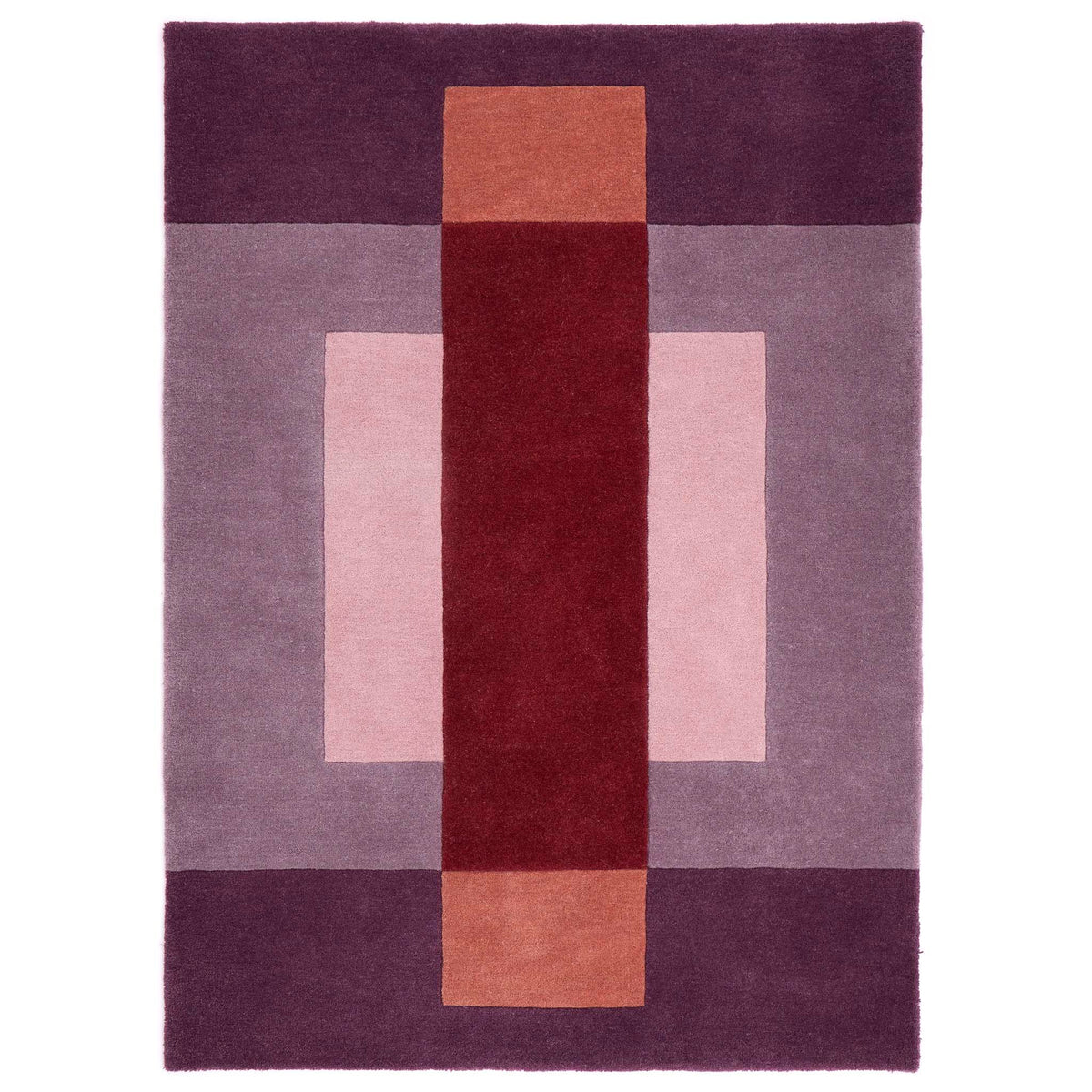Introduce rich tones of purple, terracotta, ivory, and rust into your interior with our simple Sienna Block design. Its simplistic layered 'block' pattern adds depth while creating a striking focal point in any room. Made from 100% Wool.